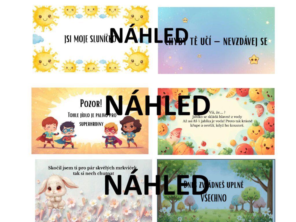 Objednejte si tyto kartičky do svačin! Jsou ve formátu PDF i WORD - takže buď jen vytisknete - j to formát vizitky. Nebo si ve Wordu upravíte jejich velikost na takovou, aby vyhovovala vašim potřebám.